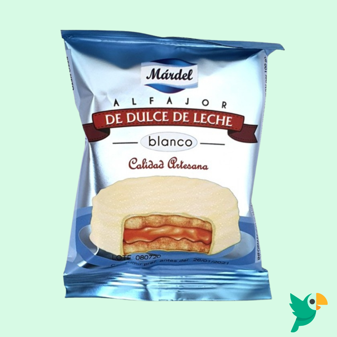 Alfajor de Doce de Leite Branco 50g – Mardel é aquele doce perfeito para matar a saudade dos sabores do Brasil e da América Latina. Com textura macia, recheio cremoso e camada de chocolate irresistível, é ideal para uma pausa rápida, acompanhar o café ou criar uma pequena sobremesa depois da refeição.