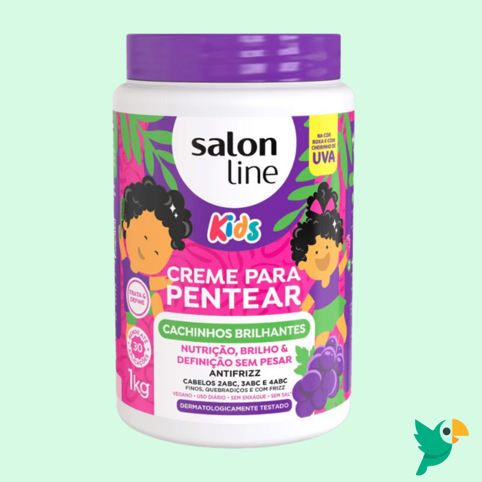 Cachinhos Brilhantes Uva 1kg – SALON LINE é um creme para pentear infantil desenvolvido para cabelos ondulados, cacheados e crespos, ideal para proporcionar definição leve, brilho intenso e controle do frizz no cuidado diário dos fios. Sua fórmula ajuda a desembaraçar, condicionar e deixar os cachinhos mais macios, soltos e com movimento natural.