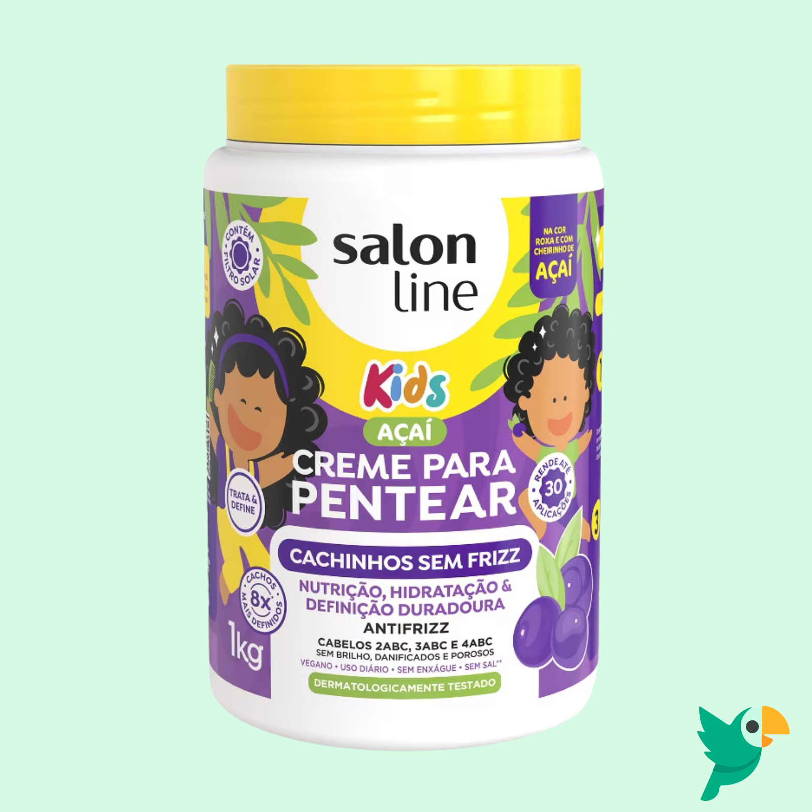 Cachinhos sem frizz açaí 1kg – SALON LINE é um creme para pentear infantil desenvolvido para cabelos ondulados, cacheados e crespos, ideal para proporcionar nutrição, hidratação, definição duradoura e ação antifrizz no cuidado diário dos fios. Sua fórmula ajuda a desembaraçar, condicionar e deixar os cachinhos mais macios, alinhados e com brilho.