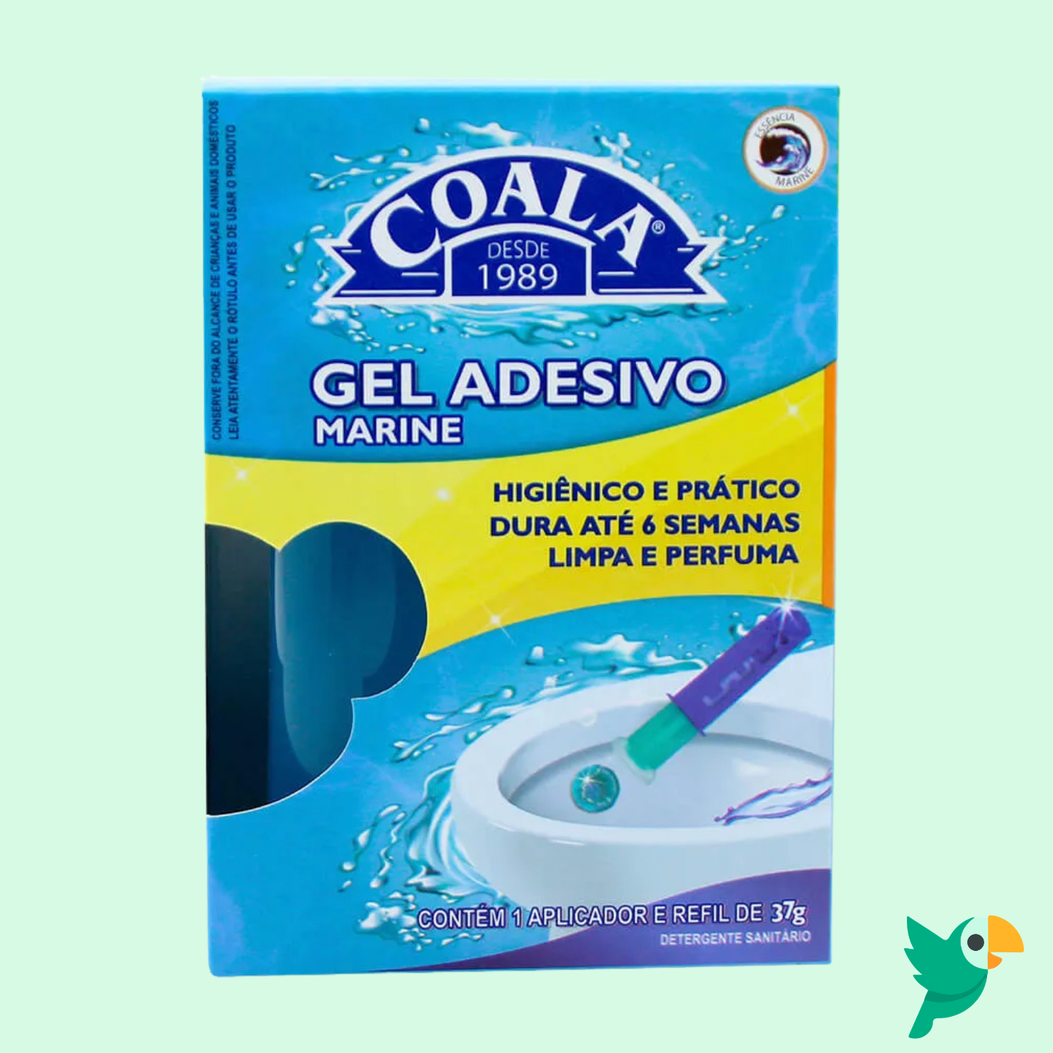 Gel adesivo marine aplicador e refil 37g – COALA é um detergente sanitário prático e higiênico, ideal para manter o vaso sanitário limpo e perfumado a cada descarga. Sua aplicação é simples, sem contato direto com o produto, dispensando cestinhas ou pastilhas manuseadas com a mão.
