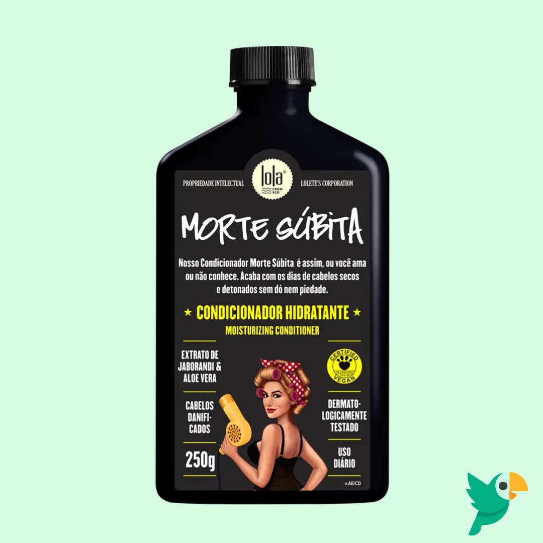 O Morte Súbita – Condicionador Hidratante 250g – Lola desembaraça, hidrata e devolve o toque sedoso aos fios, selando a cutícula e mantendo o cabelo alinhado, macio e com brilho após cada lavagem.