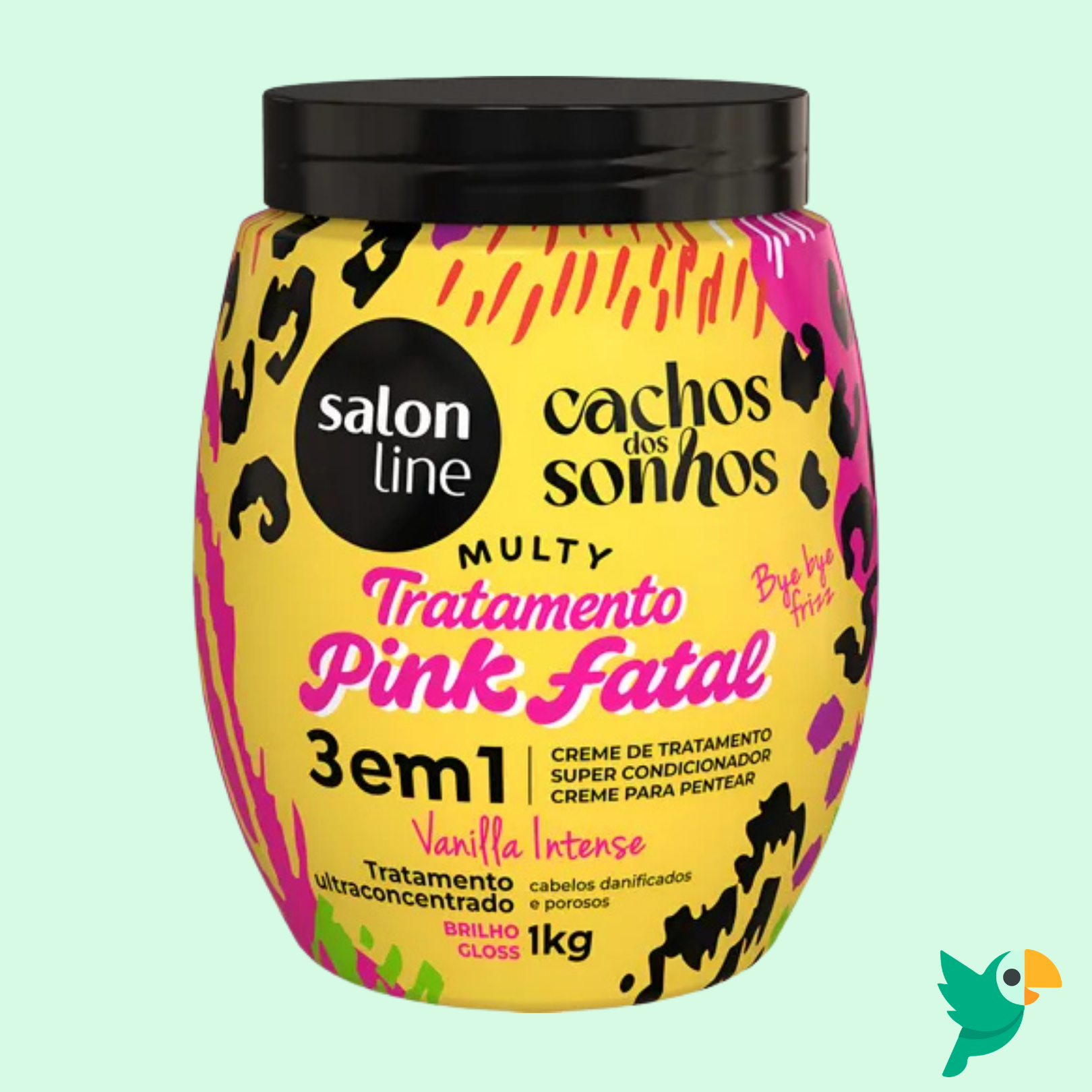 Tratamento Pink Fatal 3 em 1 Vanilla 1kg – SALON LINE é um creme de tratamento multifuncional desenvolvido para cabelos danificados e porosos, ideal para proporcionar hidratação intensa, nutrição, brilho gloss e mais alinhamento aos fios. Sua fórmula 3 em 1 oferece praticidade na rotina capilar, podendo ser usada como tratamento intensivo, super condicionador ou creme para pentear.